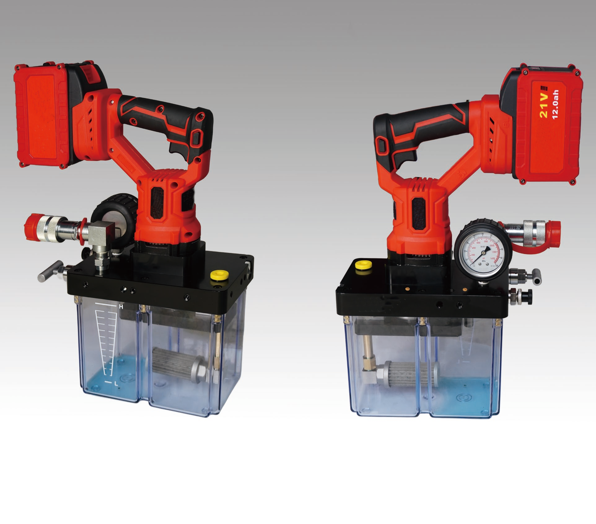Capable and compatible, this pump unit with a 2.5L oil capacity and a 700 bar max output pressure makes even the most laborious tasks a breeze. Bottle jacks, low profile heads, spreaders, and rams can all be operated using this electric powered unit. Unit can be powered by the Milwaukee M18 battery, 5.0Amp hour and above recommended.